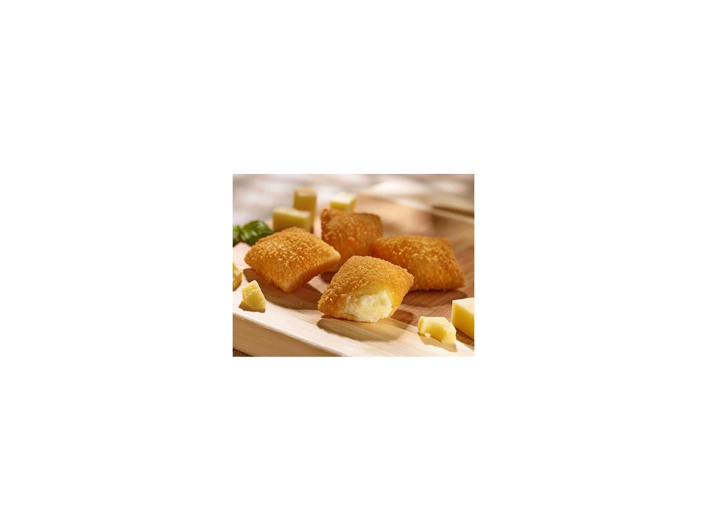 PŠENIČNÁ múka, voda, SYR Gouda 23%, strúhanka (PŠENIČNÁ múka, voda, droždie, soľ, farbivá: E160b(ii), E160c, E100), rastlinné oleje (palmový, repkový), škroby, MASLO, soľ, emulgačná soľ ( E452), glukózový sirup, zahusťovadlo (E461), biely práškový cukor (cukor, sirup z invertného cukru), modifikovaný škrob, dextróza, emulgátor (E471), stabilizátor (E466), kyselina (E330), PŠENIČNÝ proteín, PŠENIČNÝ LEPOK.