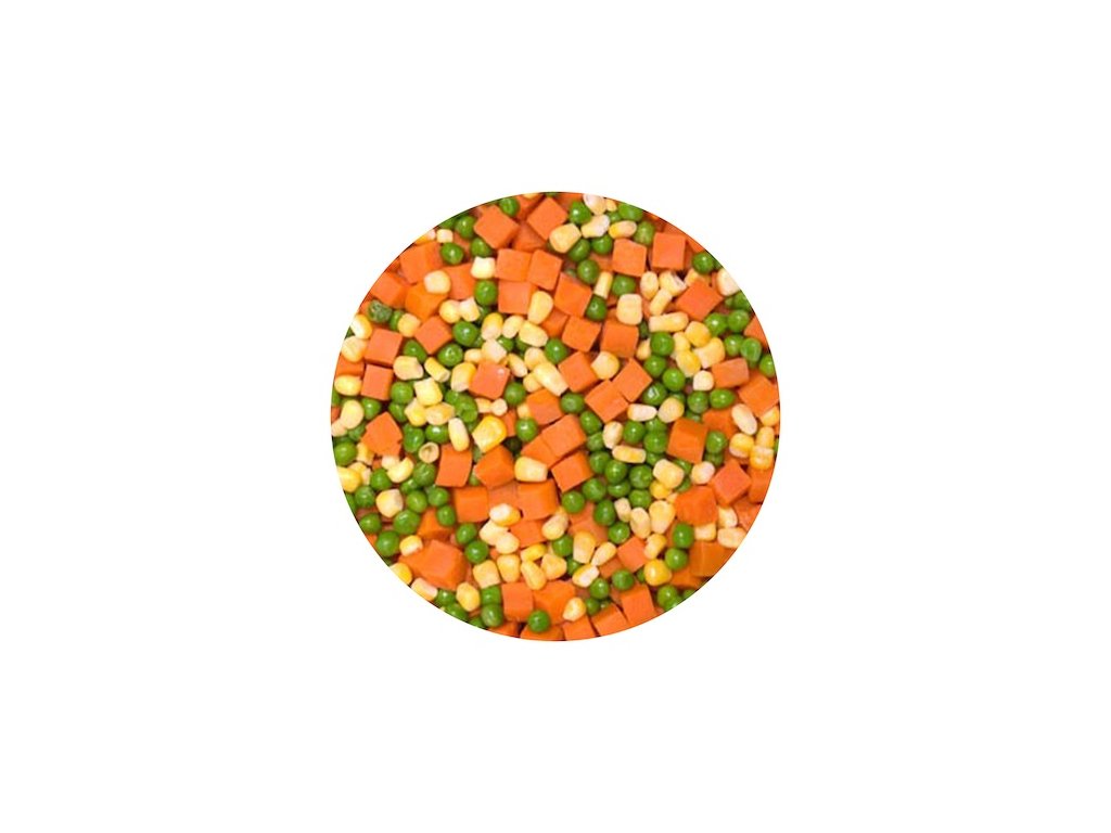 mrkva, cukrová kukurica (30%), zelený hrášok, 300g