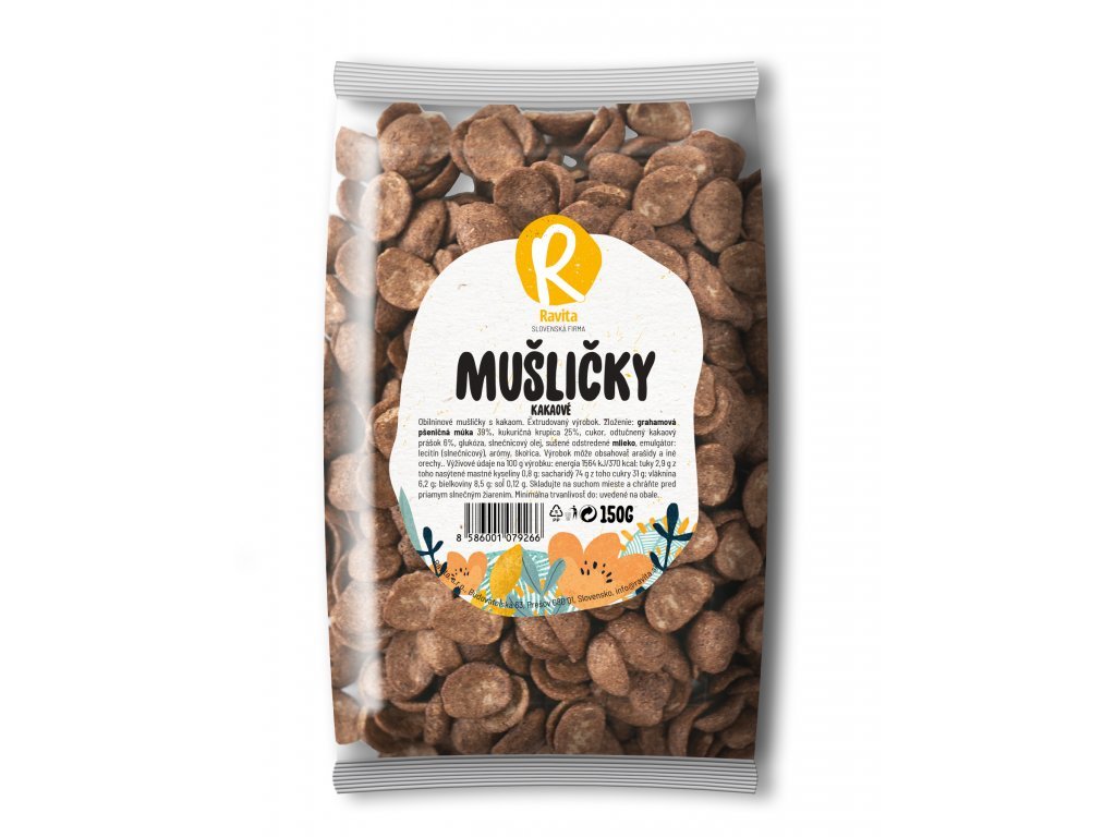 Zloženie: pšeničná múka grahamová 39%, kukuričná krupica 25%, cukor, odtučnený kakaový prášok 6%, glukóza, slnečnicový olej, sušené odstredené mlieko, emulgátor: slnečnicový lecitín, arómy, škorica. Výrobok môže obsahovať arašidy a iné orechy.
