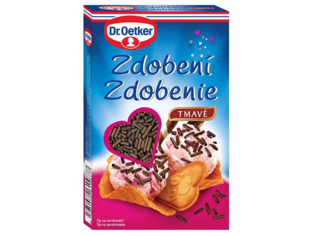 So zdobením Dr. Oetker je príprava zákuskov, dezertov, zmrzlín a vianočného pečiva radosťou aj hrou pre celú rodinu. Vyskúšajte si hravý a tvorivý prístup k pečeniu. Stačí nasypať na čokoládovú polevu, krém, zmrzlinu alebo šľahačku a hneď sa zákusok premení na umelecké dielo.